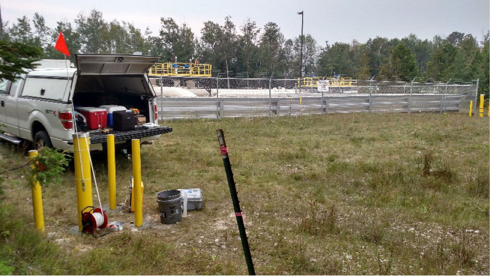 Superior Environmental conducted activities to further evaluate site conditions in accordance with the RAP approved by the MDEQ. Nine (9) soil borings were completed in the vicinity of the former excavation areas. Superior also installed groundwater monitoring wells #MW-5, MW-6, & MW-7. Superior used an air-knife to create each of their 9 boring samples which the MDEQ had previously noted was not in accordance with Enbridge policy near critical infrastructure locations. (RMP has created a detailed Google Map of Line 5 showing all MWs at the bottom of this post – check it out!)