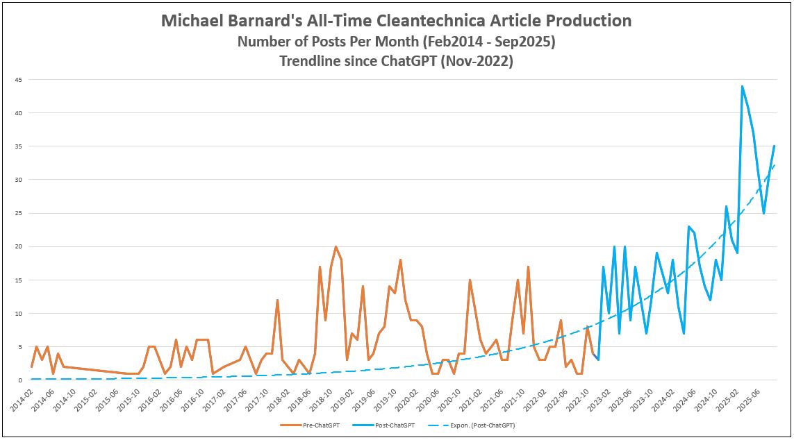 Michael Barnard is a prolific publisher of anti-hydrogen articles for Cleantechnica.com. He has published over 1,140 articles and counting for CT with the very first in February of 2014. He has already published over 100 articles since I began my research into his history for this post in June 2025. Over 200 of Michael’s articles (~20%) have the keyword hydrogen in the title making it the #1 keyword in his titled works behind #2 keyword Tesla, and #3 keyword China. It’s not ironic or surprising that my research into Michael Barnard led me to realize he and Michael Liebreich work together as colleagues in preaching their anti-hydrogen gospel. This exercise of diving into Barnard’s work, as opposed to putting him on mute for so long, has been therapeutic in a way as it has helped me to see so clearly Barnard’s modus operandi and understand how “anti-hydrogen” voices like Michael Barnard, Michael Liebreich, and many others form an affiliation of support that attempts to add credibility to their anti-hydrogen narrative.