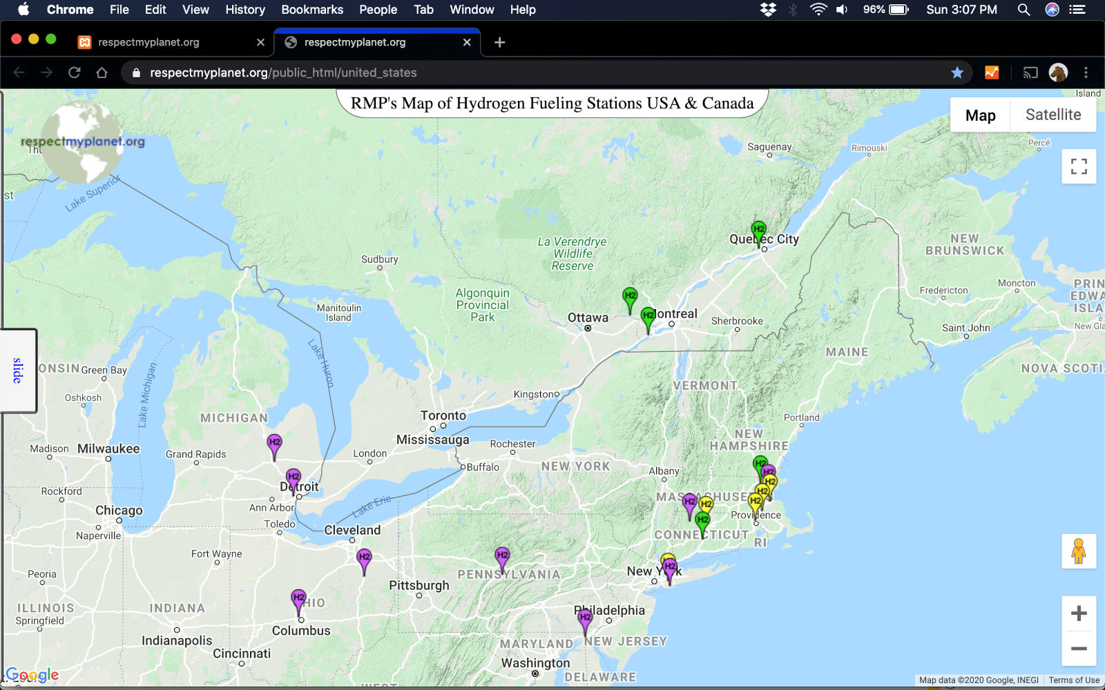 I will be doing more posts & videos on how to use RMP’s environmental maps. RMP’s Hydrogen USA & Canada map and our Ann Arbor Dioxane Plume map will be the two “feature” maps as I rebuild the software throughout this year. The concept is that many parts of the maps, using an MVC structure, form a standard mapping platform that allows me to exploit the heck out of the Google Maps API and do stuff you just can’t find in those cheesy newspaper maps which cost the papers a lot of money and are still inferior. RMP will be able to show energy infrastructure & contamination remediation using a map platform that’s next level and just fun to code.