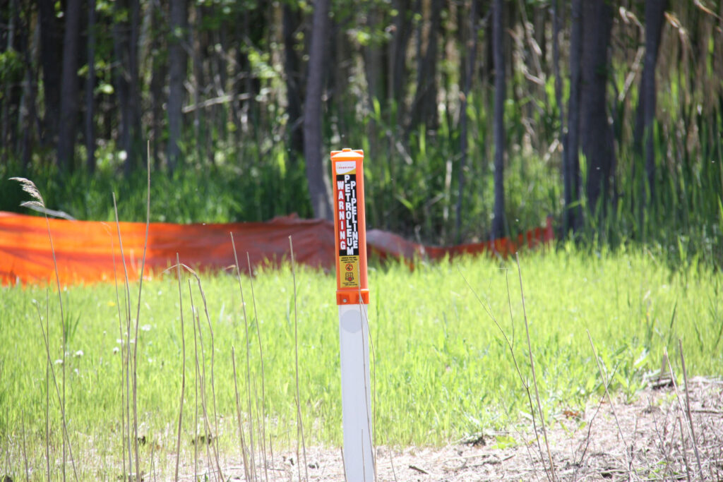 Superior Environmental conducted activities to further evaluate site conditions in accordance with the RAP approved by the MDEQ. Nine (9) soil borings were completed in the vicinity of the former excavation areas. Superior also installed groundwater monitoring wells #MW-5, MW-6, & MW-7. Superior used an air-knife to create each of their 9 boring samples which the MDEQ had previously noted was not in accordance with Enbridge policy near critical infrastructure locations. (RMP has created a detailed Google Map of Line 5 showing all MWs at the bottom of this post – check it out!)