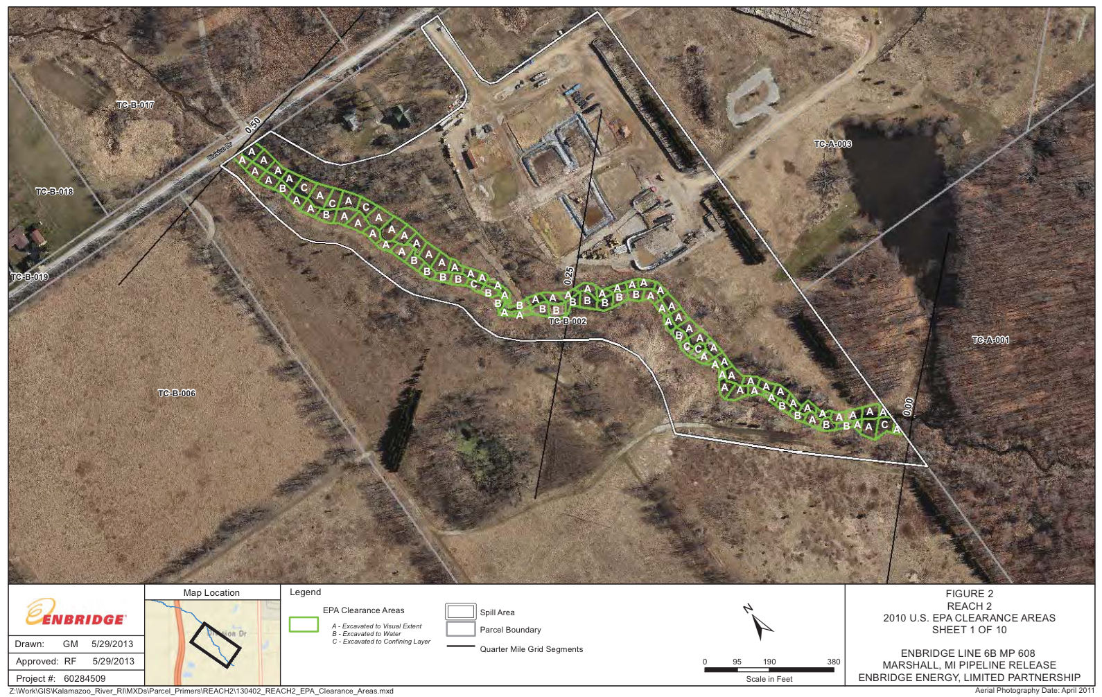 On July 26, 2010, Enbridge Energy, Limited Partnership (Enbridge) discovered a release of crude oil from the pipeline owned by Enbridge that runs just south of Marshall, Michigan (Line 6B) in the vicinity of a pump station. The Line 6B crude oil was released below grade level via a break in Line 6B at Mile Post (MP) 608, emerged onto the ground surface, flowed over land following the natural topography into Talmadge Creek.