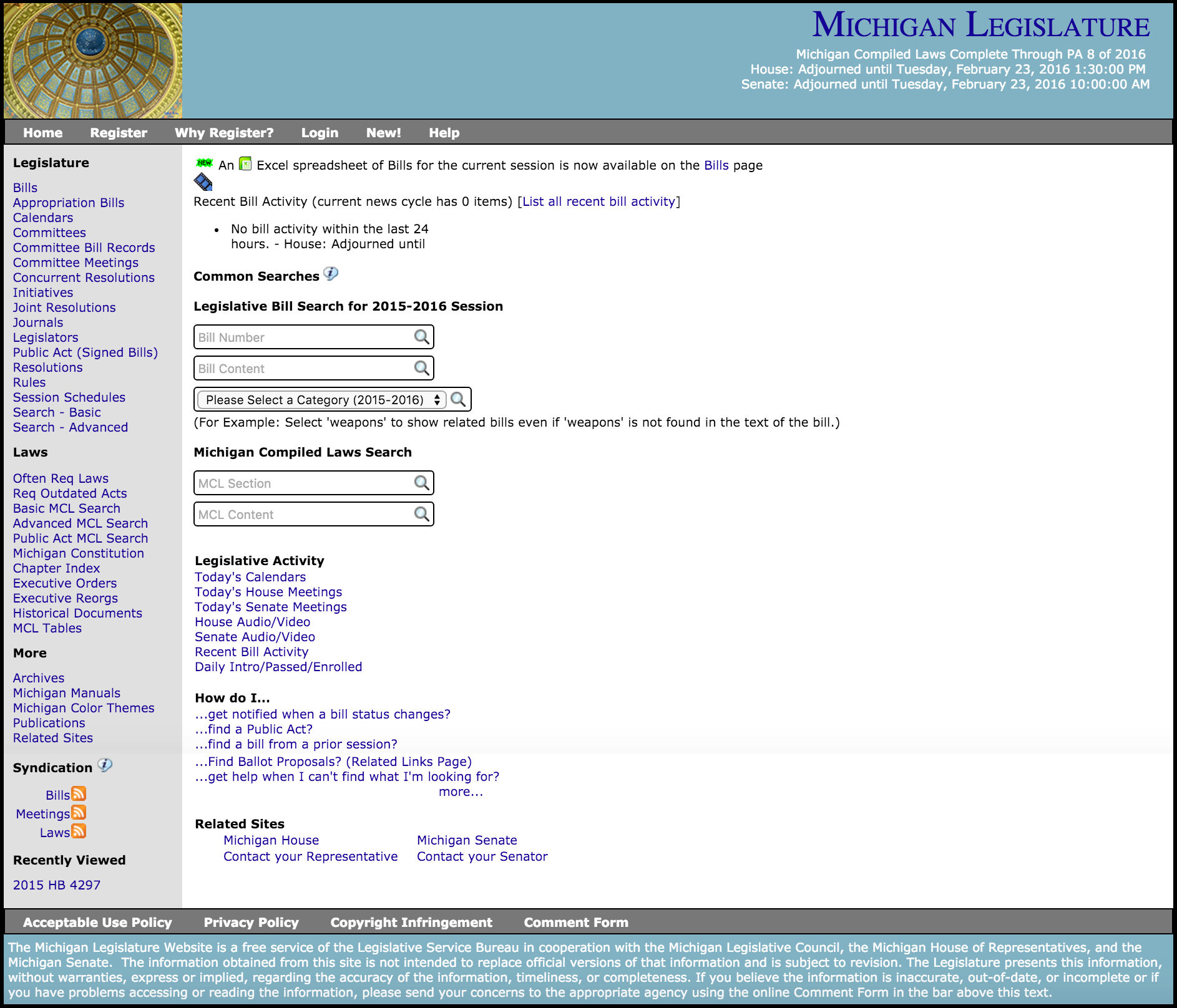 The best tool on the Internet for tracking and analyzing Michigan bills active in our legislature and Michigan compiled laws is: