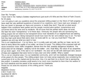 On the other side of the equation, homeowners’ associations have also tried to organize people to provide boilerplate comments and questions to the MDEQ. The groups that oppose the well have used the same exact tactics as the Word of Faith Ministry and it would be disingenuous to claim otherwise. Some of the letters against the well come from Michigan residents that do not live within Southfield and seem to show up wherever people like to gather to protest oil & gas activity.